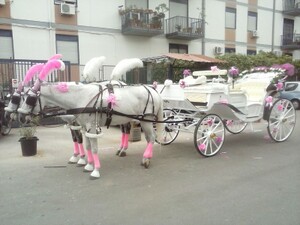 Il servizio di noleggio carrozza prevede:Uno, due o quattro magnifici cavalli bianchi, carrozza modello Victoria, cocchiere e trasportoSi consiglia di effettuare le prenotazioni con anticipo